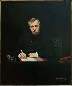 Émile de Girardin (French pronunciation: [emil də ʒiʁaʁdɛ̃]; 22 June 1802 – 27 April 1881) was a French journalist, publisher and politician. He was the most successful and flamboyant French journalist of the era, presenting himself as a promoter of mass education through mass journalism. His magazines reached over a hundred thousand subscribers, and his inexpensive daily newspaper La Presse undersold the competition by half, thanks to its cheaper production and heavier advertising. Like most prominent journalists, Girardin was deeply involved in politics, and served in parliament. To his bitter disappointment, he never held high office. He was a brilliant polemicist, a master of controversy, with pungent short sentences that immediately caught the reader's attention.[1]