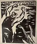 After returning to Belgrade, he created a set of graphics titled Blood-soaked Gold (Krvavo zlato) with the aim of displaying the lives of Yugoslav miners and workers. Although the collection was finished, he was unable to find a printer in Belgrade who would print his work. He printed 10 copies of the collection in his studio in 1936. With the help of architecture student Voja Midić, he reached printer Jovan Luks from Stari Bečej, who agreed to print the collection.[12] In January 1937, the first 250 copies were printed, and soon after, a second edition of 1,000 copies was published, which the writer Jovan Popović wrote the foreword for. The map of graphics depicting the difficult daily life of miners and arduous work, as well as the dissolute life of profiteers, was banned by the Belgrade City Administration in February of 1937.[1][13]
