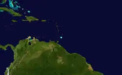 | Three | July 10–10 | Tropical storm | 60 (95) | Unknown | Lesser Antilles | None | None | |||