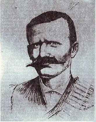 The 1896–1897 Macedonian Rebellion (Greek: Μακεδονική επανάσταση του 1896–1897) was a Greek rebellion, launched in 1896, and a guerrilla movement that took place in Macedonia in order to preserve the conscience and ready-mindedness of the Macedonian Greek populations, to create a rivalrous awe against the Bulgarians the demarcation of the Greek territorial claims in the Ottoman area and the creation of a distraction for the events of Crete. The movement was of Macedonian character, as the regiments invading Macedonia from Thessaly consisted primarily of Macedonian chieftains and fighters, most of whom were from Northwestern Macedonia. The initial impetus was given by the Ethniki Etaireia (Greek National Company), but then several Macedonian chieftains spontaneously and without coordination were involved in the events, while in some regions of Macedonia the events took the form of massive uprisings. The main rebels of the Macedonian Revolution of 1896 were the areas of Sanjak of Monastir (Florina, Bitola, Prespes), Sanjak of Korytsa (Kastoria), Sanjak of Servia (Grevena, Kozani), Sanjak of Salonica (Thessaloniki, Pieria, Imathia, Pella, Tikveš) and Sanjak of Serres (Serres, Upper Nevrokopi, Lower Nevrokopi).[1][2]