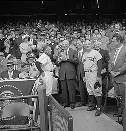 - April 17, 1956: Opening Day at Washington D.C. With president Dwight D. Eisenhower in attendance, Mickey Mantle began his triple crown year with two mammoth home runs in a 10–4 Yankees win over The Senators.