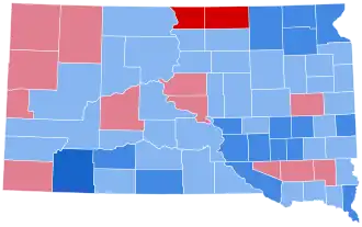 South Dakota was won by incumbent President Lyndon B. Johnson (D–Texas), with 55.61 percent of the popular vote, against Senator Barry Goldwater (R–Arizona), with 44.39% of the popular vote.[2][3] As of the 2024 presidential election, this is the last time South Dakota was carried by the Democratic nominee (although they nearly did so in 1976 for Jimmy Carter), as well as the last time a Democrat won Pennington, Lincoln, Meade, Yankton, Custer, Bennett, Clark, Hamlin, Hand, Hyde, Jackson, Jones, Lyman, Mellette, Potter, Stanley, Tripp, and Walworth Counties. As of 2024 this is also the last time that South Dakota voted more Republican than North Dakota. [4]