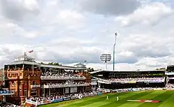 It was not until 1971 that the first official One Day International (ODI) took place at the Melbourne Cricket Ground (MCG) as a replacement for the third test of the 1970–71 Ashes series between Australia and England. This was due to a deluge of rain that had affected the match for the first three days of the test.[6] The match was a forty over match with each over being eight deliveries. After England made 190 from 39.4 overs, Australia chased the target at a steady rate to secure the match with 42 balls remaining.[7] Two years later at Lord's during the 1973 Women's Cricket World Cup, plans were made for a men's tournament to take place in 1975. The tournament was planned to involve all the Test nations at the time in two group stages with the top two in each group qualifying for the knockout stage with the final at Lord's.[8]