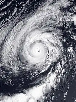 Hurricane/Typhoon Peke caused no damages or deaths.[4][32] However, was also the first tropical cyclone of hurricane strength to cross the dateline since Hurricane Sarah (1967) to cross the dateline at that strength.[32] In addition, Peke was the third tropical cyclone in three years to exist on both sides of the dateline, after 1985's Typhoon Skip[33] and 1986's Typhoon Georgette.[34]