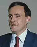 Incumbent Mayor Ed Koch, who had served since 1978, ran for an unprecedented fourth term in office but was defeated in the Democratic Party primary by Manhattan Borough President David Dinkins. Dinkins went on to narrowly defeat U.S. Attorney for the Southern District of New York Rudy Giuliani, the candidate of both the Republican Party and Liberal Party of New York.[1] Dinkins won with 50.42% of the vote to Giuliani's 47.84%.[2]