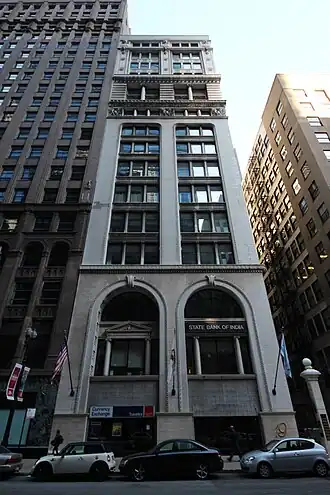 19 South LaSalle Street has been described as one of Jenney's most "uncompromising" facades due to its rectangularity which is only interrupted by horizontal banding at the 11th and 12th stories.[9] Although, the horizontal courses and the building's shifting design are typical of Jenney's work around this time period.[2] 19 South LaSalle is designed in an "L" shape with its more narrow 54 foot facade facing toward LaSalle Street while a longer, more elaborate 187 foot facade faces a small alley known as Arcade Place.[1][9] The building stands 16 stories and was originally topped with a peaked roof which was replaced by an additional three stories.[1] 19 South LaSalle Street was mentioned in the 2004 American Institute of Architects Guide to Chicago.[2]