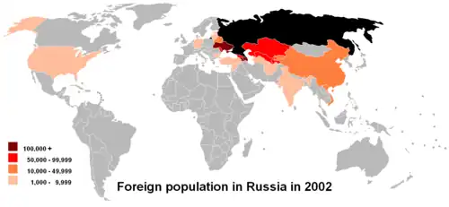 Among Russia's resident population, 1,025,413 foreign citizens and 429,881 stateless persons were counted. [1]