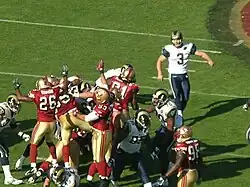 In the third quarter, St. Louis hacked at their deficit as Brown nailed a 48-yard and a 44-yard field goal. In the fourth quarter, the Rams tried to complete their comeback as QB Marc Bulger completed a 2-yard TD pass to WR Dane Looker. However, the 49ers' defense was too much to overcome.