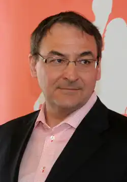 In the case of a vacancy in the leadership, the Board is required to meet to appoint an interim leader "in consultation" with the parliamentary caucus, i.e., its 34 MPs and 46 senators.[5] Before this meeting, the Board determined it would not consider anyone unless that person has the support of a majority of MPs and of the caucus as a whole, was bilingual, and promised in writing not to seek the permanent leadership and not to discuss or negotiate significant changes to the party, which would include a merger with the New Democratic Party (NDP). This was taken as intended to exclude Bob Rae a potential leadership candidate who had significant support among Liberal senators and had talked about a merger shortly after the general election loss, as well as Deputy Leader Ralph Goodale, who is not bilingual, and any other MP who may intend to run in the leadership campaign.[9][10] Nonetheless, after the caucus discussed the interim leadership on May 11, 2011, it met again on May 25 and voted to recommend Rae as interim leader over Marc Garneau; the Board subsequently confirmed the appointment.[11][12][13] Rumoured candidates who did not run for interim leader included Goodale, Carolyn Bennett, Scott Brison, and John McCallum.[14]