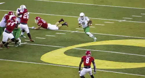 - ^ "Ducks Run Away from 'Yotes 62-13". University of Oregon Department of Athletics. August 30, 2014. Retrieved September 27, 2014.