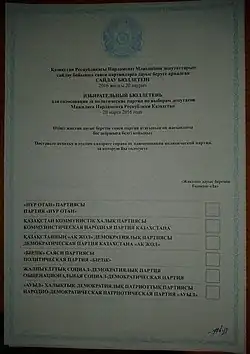 2016 Kazakhstani legislative election ballot.