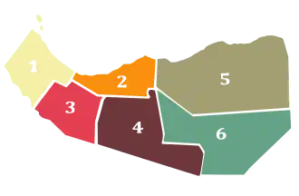 The 82 MPs in the lower House of Representatives of Somaliland are elected in six multi-member constituencies coterminous with the regions of Somaliland, using open list proportional representation for a five-year term.[2] There is a constitutional limit of three legal political parties at the national level. Residents aged 15 or older are able to vote.[3]