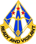 The headquarters was inactivated in 1960 at McChord Air Force Base, Wash. and then reactivated on 15 December 1961 at Lockport Air Force Station, N.Y., as the 31st Artillery Brigade (Air Defense). It assumed the personnel and equipment of the inactivating 2nd Artillery Group (Air Defense).[2] At the time, the brigade appears to have supervised, among others, 1-4 Artillery (AD), and 2nd Battalion 62nd Artillery, plus 2nd Missile Battalion, 209th Artillery, NY ARNG.[2] In response to the Cuban Missile Crisis, the brigade was set up with nine Hercules and Hawk battalions defending southern Florida from attack by Cuba and the Soviet Union. The brigade was designated under its present name on 15 March 1972, and after one final inactivation in 1979 at Homestead Air Force Base in Fla., the brigade would be reactivated again on 1 April 1988, at Fort Hood, Tex. to support III Corps. In February, 1996, the brigade once again received movement orders, this time to Fort Bliss, Tex.