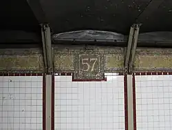 The station was operated by the BMT until the city government took over the BMT's operations on June 1, 1940.[10][11] This station underwent an overhaul in the late 1970s, which included fixing the station's structure and replacing the original wall tiles, old signs, and incandescent lighting with 1970s modern-look wall tile band and tablet mosaics, signs and fluorescent lights. Staircases and platform edges were also repaired.