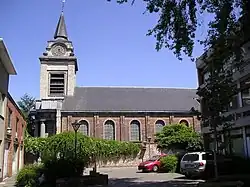 Construction of the town hall began in the middle of the 12th century,[4] making it the oldest surviving town hall in Belgium.[5] Several manuscripts from this period still survive in the town archives.[4] During the Hundred Years War the town of Aalst allied themselves with Louis de Male against Philip van Artevelde and sent troops in the victorious Battle of Roosebeke.[6] The town hall, and the city itself, were almost entirely destroyed by fire in 1360. The town was soon rebuilt and a new belfry in gothic style was built in the 15th century. This was a time of great prosperity for the city, dominated by the powerful weavers' guild. It is also at that time that Dirk Martens, a local citizen, became the Southern Netherlands’ first printer, founding a printing shop in 1473[7] that published books by various authors including Christopher Columbus; Martens would later become a professor at the Old University of Leuven,[4] and he was laid to rest in the St Martin's Church of Aalst.[8]