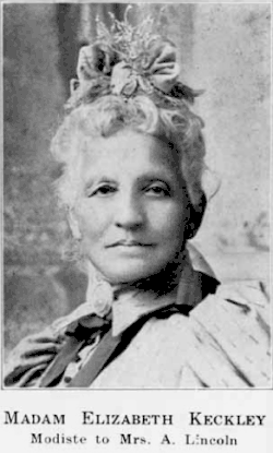 - Dressmaker – After purchasing her freedom in St. Louis, Elizabeth Keckley moved to Washington, DC, and became the dressmaker for Mary Todd Lincoln, producing elegant gowns for the capital's elite women. Her 1868 autobiography Behind the Scenes display her ardor and initiative in creating her business and her life.[6]