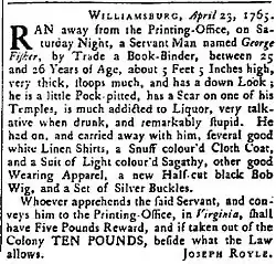 Freedom on the Move Collection of newspaper ads in the America colonies that include posted "runaway ads" by enslavers, as well as jailers’ descriptions of people they have apprehended.