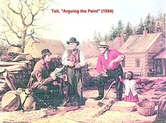 George Caleb Bingham (1811–1879) was an American artist whose paintings of elections in the 1850s are used by historians to explain the complexities and details of grassroots democracy. The paintings were on tour for years, as Americans paid money to see themselves in political action.[30]