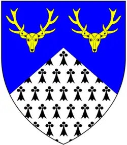 Sir James St Leger was the third son of Sir John St Leger (died 1441) of Ulcombe, Kent, by his wife Margery Donnet. James's elder brother was Sir Thomas St Leger, brother-in-law of Kings Edward IV and Richard III. Annery passed to Sir George St Leger, the son and heir of Sir James St Leger by Anne Butler, and then to his son Sir John St. Leger (died 1596).[4] The St Leger's also held estates at Dartington and Canonsleigh Abbey.[37] At some time before his death in 1596 Sir John St Leger sold Annery to his son-in-law Tristram Arscott (1544–1621) of Launcells,[38][39] the son and heir of Richard Arscott (died 1578), the 4th son of John Arscott (died 1541) of Arscott[40] in the parish of Holsworthy.[41] On 7 October 1583 Tristram Arscott had married Eulalia,[42] daughter of Sir John St. Leger[4][43] and widow of Edmund Tremayne (died 1582) of Collacombe, Lamerton, Chief Secretary for Ireland and Clerk of the Privy Council.[44][nb 4]