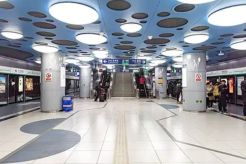 Aolinpike Gongyuan (Olympic Park) station[1] (simplified Chinese: 奥林匹克公园站; traditional Chinese: 奧林匹克公園站; pinyin: Àolínpǐkè Gōngyuán zhàn) is an interchange station on Line 8 and Line 15 of the Beijing Subway.