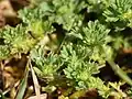 Alchemilla arvensis (syn. Aphanes arvensis), known as parsley-piert,[2] is a sprawling, downy plant common all over the British Isles where It grows on arable fields and bare wastelands, particularly in dry sites. The short-stalked leaves have three segments each lobed at the tip. It flowers from April to September. The tiny green flower has four sepals and no petals; stipules form a leaf-like cup, enclosing the flower.