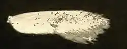 The wingspan is about 9 mm. The forewings are white, above the fold strongly suffused with golden brown especially toward the apex. There is an irregular series of ill-defined small darker brown spots intervened with whitish along the outer half of the costal edge. The dorsal edge below the fold is nearly immaculate white up to the middle of the wing, where it is cut off by a large ill-defined dark brown patch, which crosses the fold and gradually widens out and is lost in the dark portion of the wing. The hindwings are light ochreous fuscous.[2]