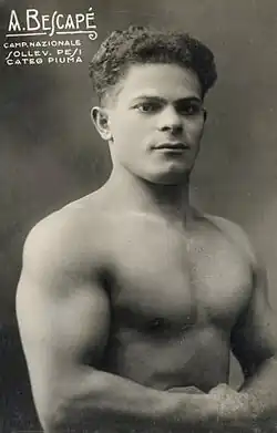 Attilio Bescapè (22 September 1910 – 3 March 1975) was an Italian weightlifter. He competed at the 1932 and 1936 Olympics in the featherweight class (−60 kg) and finished in fifth and sixth place, respectively. He won a silver medal at the 1938 World Weightlifting Championships.[2]