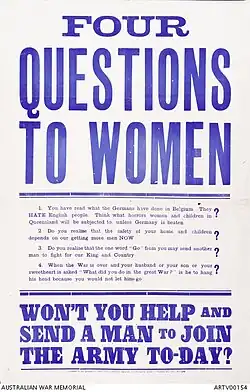 - Beaumont, Joan. "Whatever happened to patriotic women, 1914–1918?." Australian Historical Studies 31.115 (2000): 273-286.