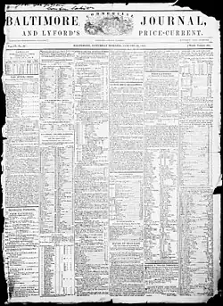 - ^ a b c d e "About Baltimore commercial journal, and Lyford's price-current. (Baltimore, Md) 1840-1849". Chronicling America: Historic American Newspapers. Library of Congress. Retrieved April 7, 2016.