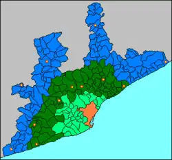 According to the EURBANET project by Delft University of Technology[10] it speaks about polynuclear urban region when there exists a series of important urban centers that relate intensely among them and to the exterior. This one is the case of bordering zones to the urban region that they extend around the cities of Tarragona and Girona. They are areas with a great economic dependence and services to the capital. They are narrow corridors well communicated to Barcelona, both by highway and railroad, which there fuse the metropolitan areas of these cities with the urban region. The PUR of Barcelona comprises 6,103,221 people in an area of 6,005 km2.