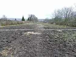 Ordnance Survey (OS) maps show that a sandstone quarry was located at Causewayfoot, overlooked by the old but now demolished dwelling at Selsy, with cottages and the farm of Causewayfoot standing nearby. A small ironstone pit was also present. The OS 6 in. of 1897, 1911, 1938 show a trapezoidal curling pond south-west of Kilbirnie Castle and records show that a match was played between Kilbirnie v. Dalry 3 rinks each, on 20 February 1895.[33] The curling pond built below the Causewayfoot is now drained and overgrown, shown as already abandoned in 1938. A lozenge-shaped curling pond at Fudstone south-west of the dwelling is shown on OS 6 in. 1st ed. ca. 1860, 1897 and 1911.[33] The Nether Mill is recorded as the Barony Mill of Kilbirnie under the name Nethermiln of Kilbirnie.