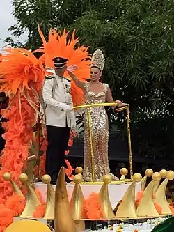 The carnival queen during the Battle of Flowers.