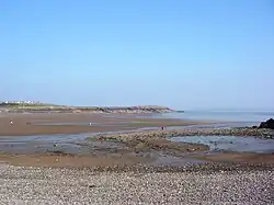 The area now occupied by Barry has seen human activity in many periods of history. Mesolithic or Middle Stone Age microlith flint tools have been found at Friars Point on Barry Island and near Wenvoe[8] and Neolithic or New Stone Age polished stone axe-heads were discovered in St. Andrews Major.[9] A cinerary urn (pottery urn buried with cremation ashes) was found on Barry Island during excavations of Bronze Age barrows[10][11] and two more were found in a barrow at Cold Knap Point.[12] A large defended enclosure or Iron Age promontory hillfort was located at the Bulwarks at Porthkerry[13] and there was evidence of the existence of an early Iron Age farmstead during construction of Barry College off Colcot Road.[14]