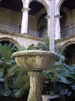 The cloister of the adjacent monastery which dates back to 1739 now houses a museum of sacred art. In front of the basilica on the sidewalk stands a bronze life-size statue by Jose Villa Soberon of José María López Lledín known as El Caballero de Paris (1899–1985) is buried inside the basilica.