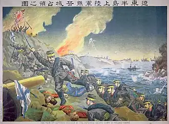 Japanese lithograph of troops landing under fire on the Liaodong Peninsula | |||||||