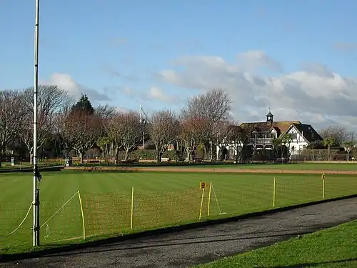 Worthing Bowling Club was established in 1907 and was originally based at Homefield Park—the site of the town's only bowling green. In 1924, when Beach House Park's first two greens opened, the club moved there. By 1938, eight clubs had been founded in the park, and a pavilion had been built.[4] In 1972, the second men's Bowls World Championship was staged at Beach House Park, at which time another pavilion was added. Five years later, the third women's World Championship was also held, and in 1979 the Masters Tournament took place. The men's World Championship returned in 1992.[7] All five greens have automatic irrigation facilities. As of 2010, four clubs are based at the park.[2]