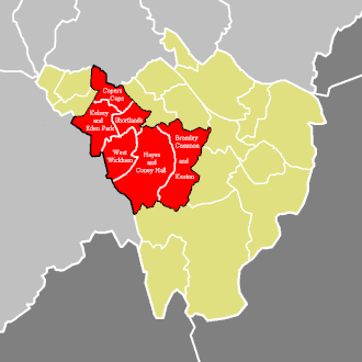 1974–1983 London Borough of Bromley Anerley, Clock House, Copers Cope, Eden Park, Lawrie Park and Kent House, Manor House, Penge and Shortlands.[5]