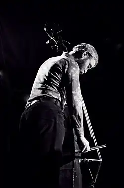 According to Los Angeles Times critic Don Heckman, the resulting textures heard in Black Beauty's music exhibited "an almost pointillistic quality, with bits and pieces of sounds darting in and out of the overall texture, and Davis' trumpet skimming through the mix".[10] In Spin, Erik Davis highlighted Grossman's "squonking sax", Corea's "nastily distorted" keyboards, and Davis' "milky, yearning, sometimes angry" trumpet playing.[11] Because they were playing around a preceding vamp or theme when Davis signaled the next, Tingen said the musical shifts heard on the record had the effect of post-production crossfades, similar to those used by producer Teo Macero on the studio recordings In a Silent Way (1969), Bitches Brew, and Jack Johnson. Macero claimed Davis conceived his onstage approach from him: "It was because of me, because we always overlapped sections in our edits."[12]