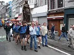 Le Puy-en-Velay: In 1254 when passing through on his return from the Holy Land Saint Louis IX of France gave the cathedral an ebony image of the Blessed Virgin clothed in gold brocade (Notre-Dame du Puy). It was destroyed during the Revolution, but replaced at the Restoration with a copy that continues to be venerated.[26]