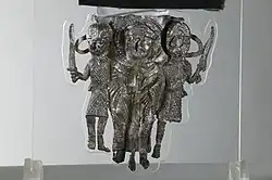Remains of a metal ampulla depicting Becket's martyrdom. A pilgrim would have acquired it with miraculous "water of Saint Thomas".[10]
