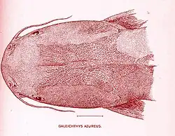 The blue sea catfish (Ariopsis guatemalensis), also known as the widehead sea catfish,[2] is a species of sea catfish in the family Ariidae.[3] It was described by Albert Günther in 1864, originally under the genus Arius.[4] It is found in tropical marine, brackish and freshwater along the Pacific coast in Central America, ranging from Mexico to Panama as well as Nicaragua. It dwells at a depth range of 0 to 20 m (0 to 66 ft). It reaches a maximum total length of 37 cm (15 in).[3]