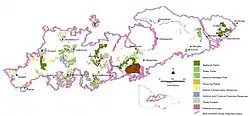 Box–ironbark forest is found on rocky, often auriferous (gold-bearing), soils, in flat and undulating landscapes at altitudes of 150–600 m above sea level, and with an average annual rainfall of 500–800 mm. About 40% of the area formerly supporting the ecosystem in Victoria is public land with less than 20% protected in conservation reserves. About 55% has been permanently cleared for agriculture, mining and urban development. Remaining forest has been fragmented.[1]