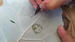 The ethnographer Richard Taylor recorded that the leaves were used to wrap cakes made from hīnau berry meal while they cooked in a hāngī.[7] They were also used, he claimed, to line the baskets which held the siftings of raupō pollen in the process of making bread (from the pollen called pungapunga[8]), the siftings then being thrown out.[9] An oil can be produced by heating the gum, which was applied to fish hooks as a lacquer.[4]