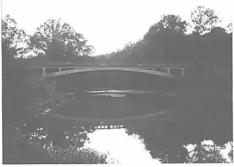 Bridge in Franklin Township is a historic arch bridge located at Franklin Township in Greene County, Pennsylvania. It is a 132-foot-long (40 m), open spandrel, concrete arch bridge constructed in 1919-1921. It crosses Ten Mile Creek.[2]
