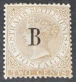After the closure of the post office in July 1885, the B overprinted stamps were seen used elsewhere. An example is a cover sent from Singapore in December 1887 bearing postage stamps from Straits Settlements both with and without the overprint.[1]