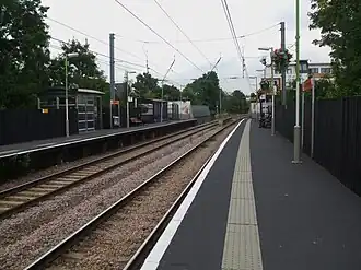 Brondesbury is a station on the Mildmay line of the London Overground. It is situated on a viaduct crossing Kilburn High Road in the Brondesbury area of Kilburn in the London Borough of Brent. It is approximately 200 m (660 ft) south-east of Kilburn station and half a mile north-west of Kilburn High Road station.