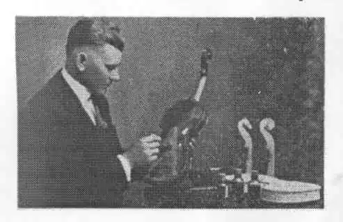 William Frank "Bill" Bublitz (4 May 1900 - 3 July 1962), Elkhorn, Wisconsin, son of a nearby farmer began making violins in 1912 when he was only twelve years old. July 9, 1921 the violin maker filed for a patent on his newly invented “Cramping Form for Violin Bouts" and received a patent on May 9, 1922.[4] "A general line of musical instruments was announced by William F. Bublitz, who opened this week (February 17, 1923) in Elkhorn, Wis."[5] “The Wisconsin inventor initially specialized in making violins especially adapted for juveniles. These violins were about three-quarters the regular size which were particularly suited for a boy or girl who found it difficult to handle adult violins. Mr. Bublitz inherited his love for music from his grandfather, Carl Bublitz. The latter was a violinist in Leipzig, Germany. The younger Bublitz was skilled as a violinist, but modestly said that his knowledge was acquired to enable him to better perfect the instruments that he makes."[6] Although the business was originally located in Elkhorn, later it moved to Burlington until a fire destroyed the business.