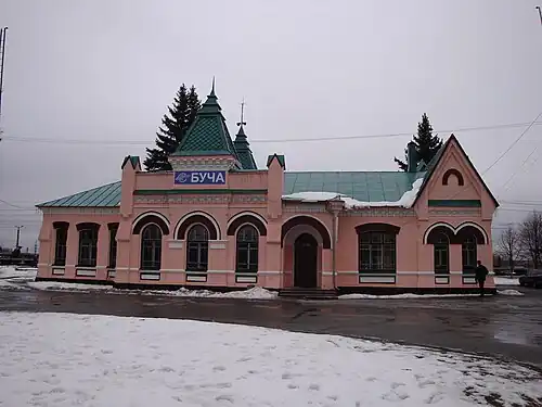 Bucha railway station (Ukrainian: Станція Буча) is a railway station in the Ukrainian city of Bucha, and is operated through the Southwestern Railways.