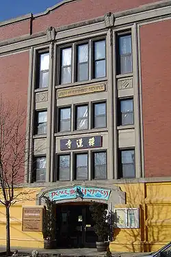 The first Buddhist temple in America was built in 1853 in San Francisco by the Sze Yap Company, a Chinese American fraternal society.[11] Another society, the Ning Yeong Company, built a second in 1854; by 1875, there were eight temples, and by 1900 approximately 400 Chinese temples on the west coast of the United States, most of them containing some Buddhist elements. Unfortunately a casualty of racism,[12] these temples were often the subject of suspicion and ignorance by the rest of the population, and were dismissively called joss houses.