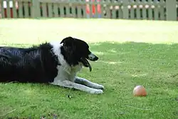 Border Collie playing in back fields of Highland Stables